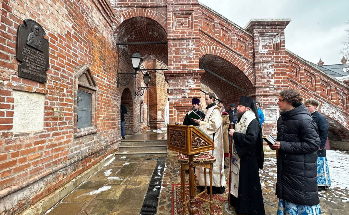 На Крутицком подворье прошло торжественное освящение мемориальной доски в ознаменование 100-летия исповеднической кончины Святителя Тихона, Патриарха Всероссийского