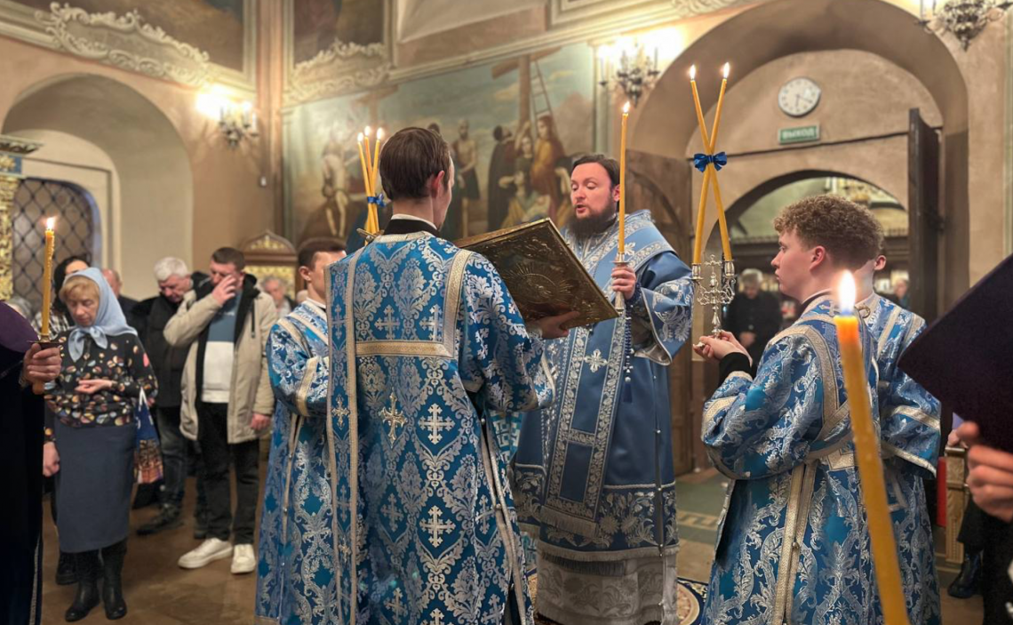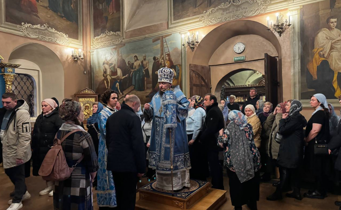 В канун праздника Благовещения Пресвятой Богородицы епископ Истринский Серафим совершил Всенощное бдение в Свято-Успенском соборе Крутицкого подворья