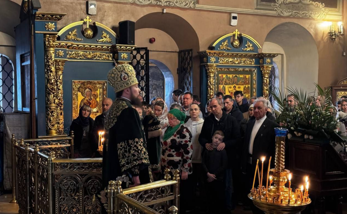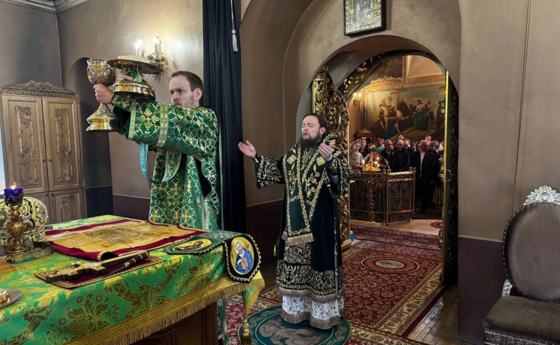 В праздник Входа Господня в Иерусалим епископ Истринский Серафим совершил Божественную Литургию в Свято-Успенском соборе Крутицкого подворья