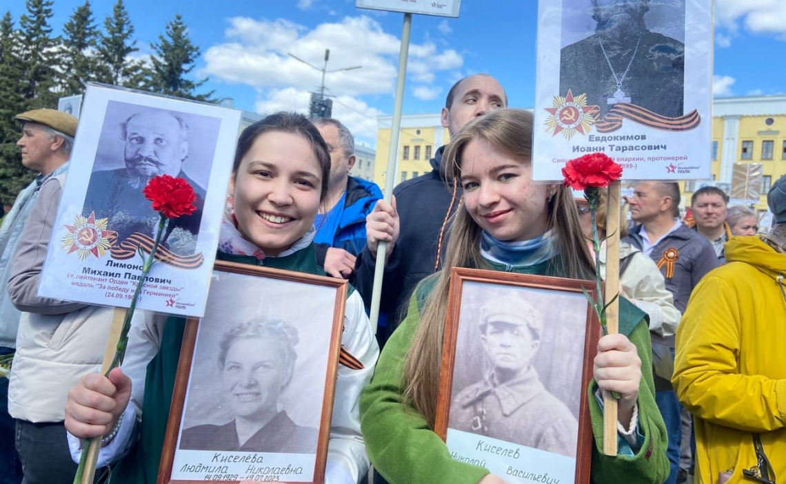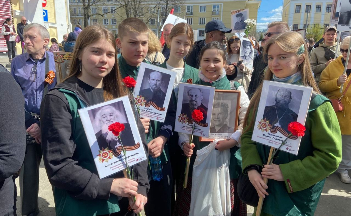 Православная молодёжь Вятки приняла участие в шествии Бессмертного полка. Молодые люди несли портреты священников-фронтовиков, служивших в Вятской Епархии.