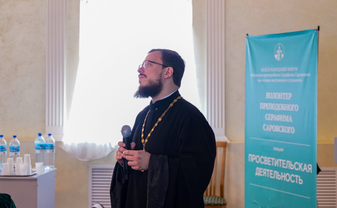 Далее к собравшимся обратился заместитель председатель Синодального отдела по делам молодежи иерей Алексий Соловьев: «Конкурс «Волонтер преподобного Серафима Саровского» один из ключевых и самых масштабных молодежных проектов, которые сейчас осуществляются Церковью. Благодаря этому конкурсу мы просто видим, какая большая работа осуществляется в разных епархиях, но и относимся к нему, как к возможности совершать христианские поступки в отношении наших ближних. Отрадно, что многие люди в лоне Матери Церкви помогают другим людям и трудятся во славу Господа, и здесь в Дивеевской древней обители мы сможем более подробнее узнать о трудах и делах добровольцев».