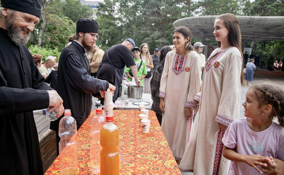 Особый интерес вызвала возможность попробовать настоящий монастырский квас, приготовленный сестрами женского Свято-Успенского монастыря из села Березники, – вкусный символ традиций и гостеприимства. Квасом угощали монахи Свято-Покровского мужского монастыря г. Корсаков.
