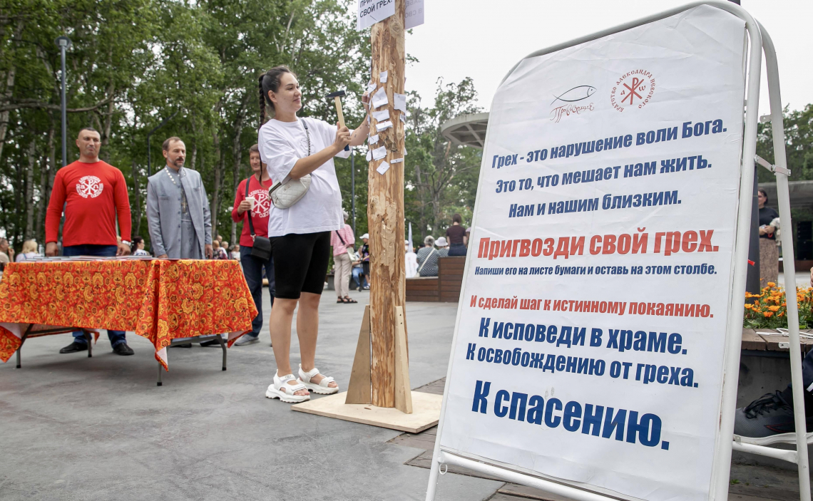 Организаторы установили в парке деревянный столб. Каждый желающий мог написать на листке бумаги свои главные пороки или грехи, а затем собственноручно прибить этот листок гвоздем к столбу. Этот символический жест означал признание своих ошибок перед Богом, ближними и самим собой, а также решимость начать путь исправления. За несколько часов акции около 250 человек сделали этот смелый шаг. Священнослужители, дежурившие у столба, отвечали на вопросы прохожих, разъясняя суть покаяния. Каждый участник акции получил на память приглашение на Богослужение и информационную листовку о Таинстве Исповеди.