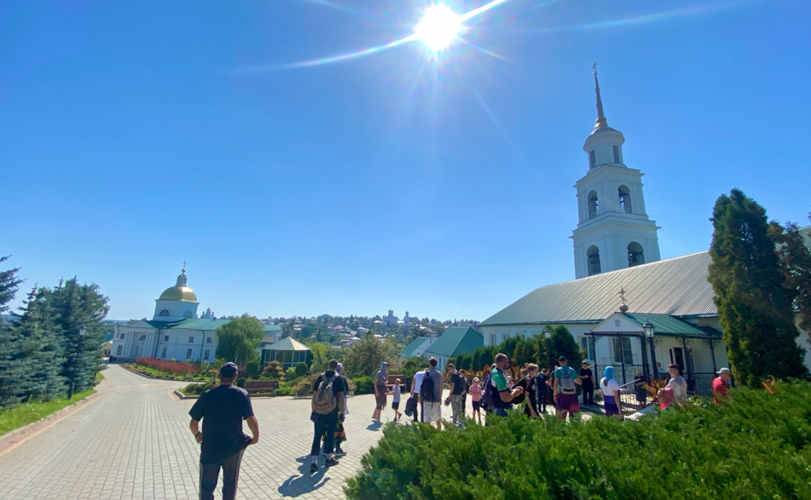 Следующей остановкой стал Знаменский женский монастырь, где паломников по благословению игуменьи Аркадии (Еньковой) накормили в монастырской трапезной обедом. У могилы местночтимой подвижницы затворницы Меланьи была пропета «Вечная память».