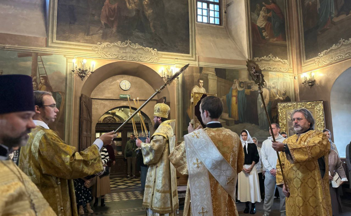 В Неделю 17-ю по Пятидесятнице епископ Истринский Серафим совершил Божественную Литургию в Свято-Успенском соборе Крутицкого подворья