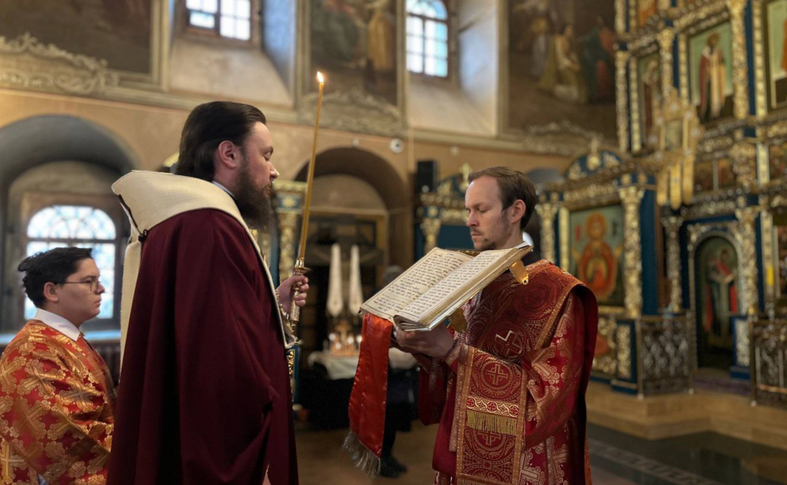 9 октября 2025 года, в день памяти Святого Апостола и Евангелиста Иоанна Богослова и Святителя Тихона, Патриарха Московского и всея России, председатель Синодального отдела по делам молодежи епископ Истринский Серафим совершил утреню и Божественную Литургию в Свято-Успенском соборе Крутицкого Патриаршего подворья.
