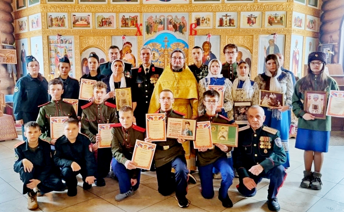 Атаман Ленинск-Кузнецкого станичного казачьего общества (ЛКСКО) В. Ю. Стёпкин поздравил всех присутствующих и вручил почётные грамоты самым усердным казачатам и кадетам.