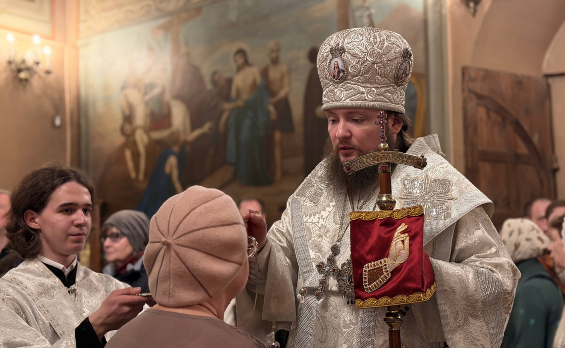 После Великого повечерия Владыка совершил чин литии с освящением хлебов, пшеницы, вина и елея, а на утрени возглавил полиелей и великое славословие. Епископ Серафим обратился к молящимся с архипастырским словом.