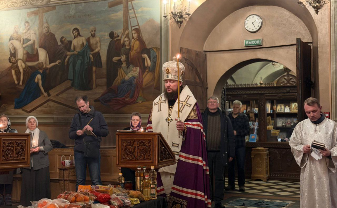 13 февраля 2026 года, в канун мясопустной родительской субботы, председатель Синодального отдела по делам молодежи епископ Истринский Серафим совершил утреню c парастасом в Свято-Успенском соборе Крутицкого Патриаршего подворья.