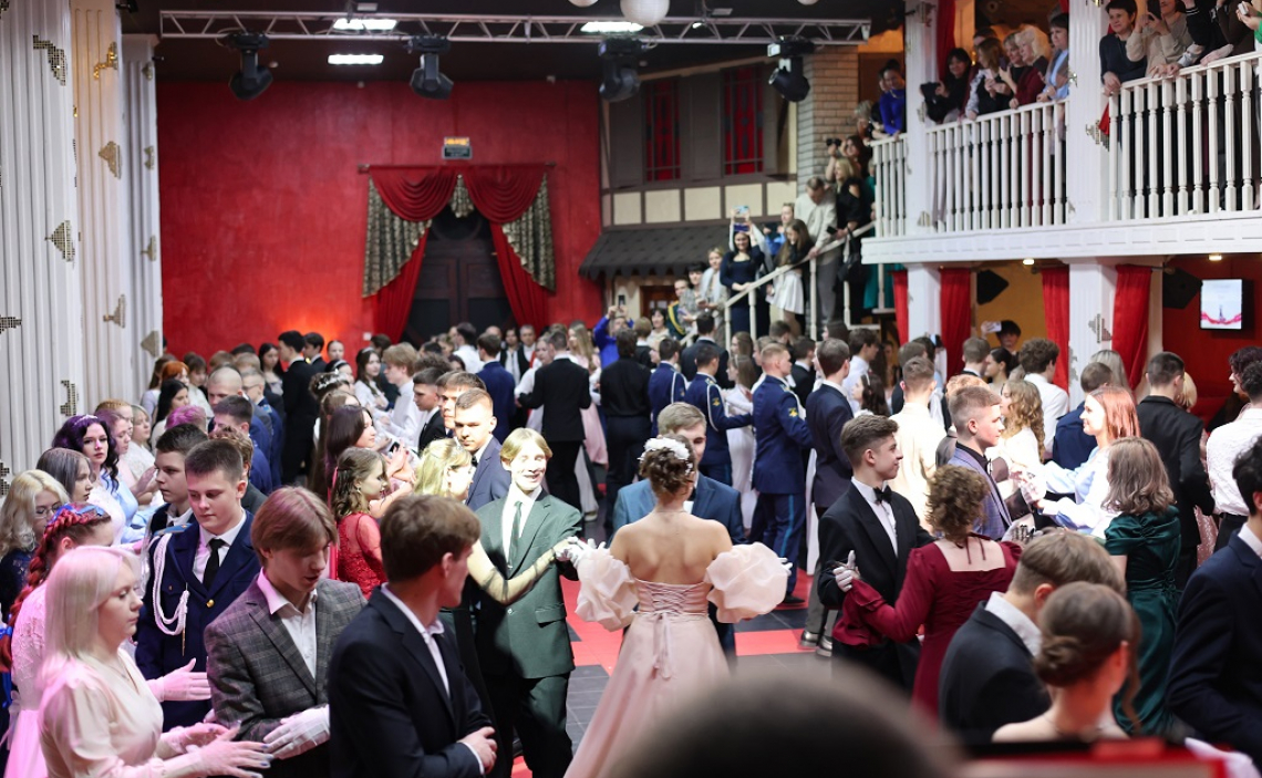 Затем состоялась праздничная программа мероприятия, которую составили разновидности бальных танцев, такие как полонез, фигурный вальс, медленный вальс, полька-тройка, падеграс, Московская кадриль, Гиавата и другие.