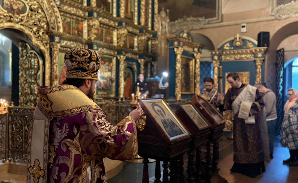 В Неделю вторую Великого поста, день памяти святителя Григория Паламы, архиепископа Фессалонитского, епископ Истринский Серафим совершил Всенощное бдение в Свято-Успенском соборе Крутицкого подворья