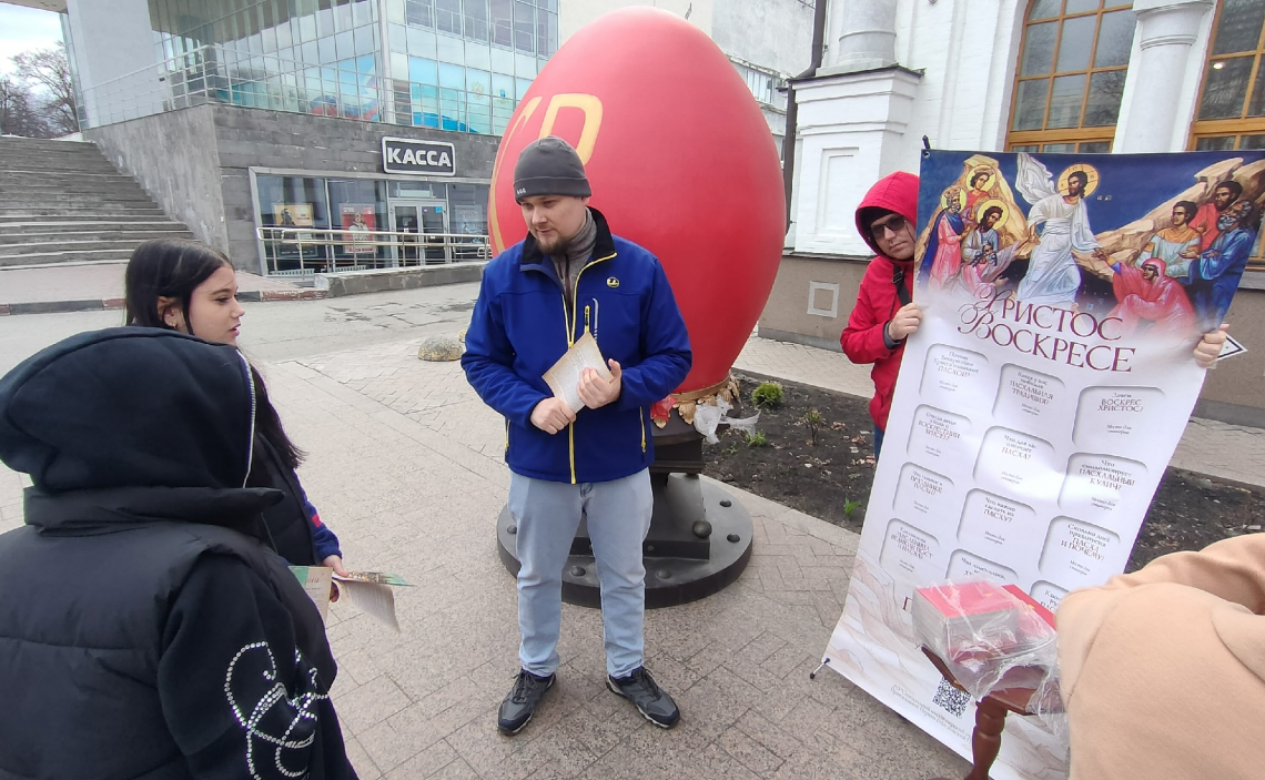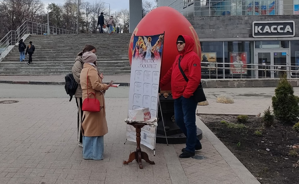 Руководитель епархиального миссионерского отдела иерей Владимир Маняков и участники акции распространяли буклеты с информацией о празднике Воскресения Христова и предлагали ответить на вопросы о Пасхе. За правильные ответы прохожие получали Евангелие. Все желающие могли задать вопрос отцу Владимиру.