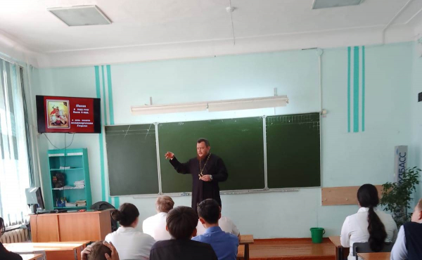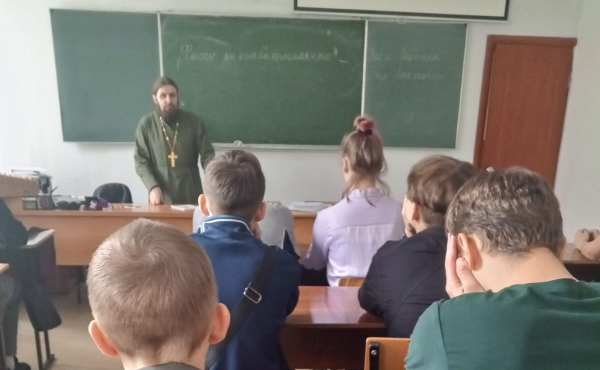 В г. Осинники прошли беседы священника со школьниками на тему: «Славные сыны Отечества»