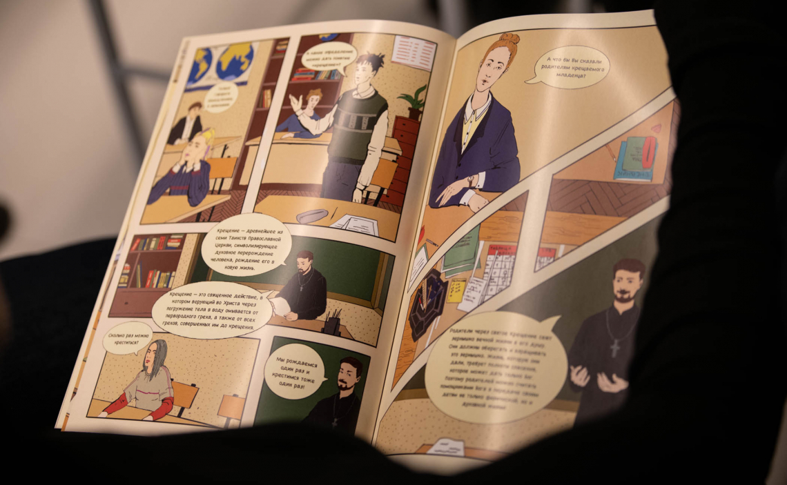 Его презентовал Преосвященнейший Игнатий, епископ Выборгский и Приозерский. Он напомнил, что первый выпуск пособия вышел весной 2018 года, получив в СМИ название «православный комикс».