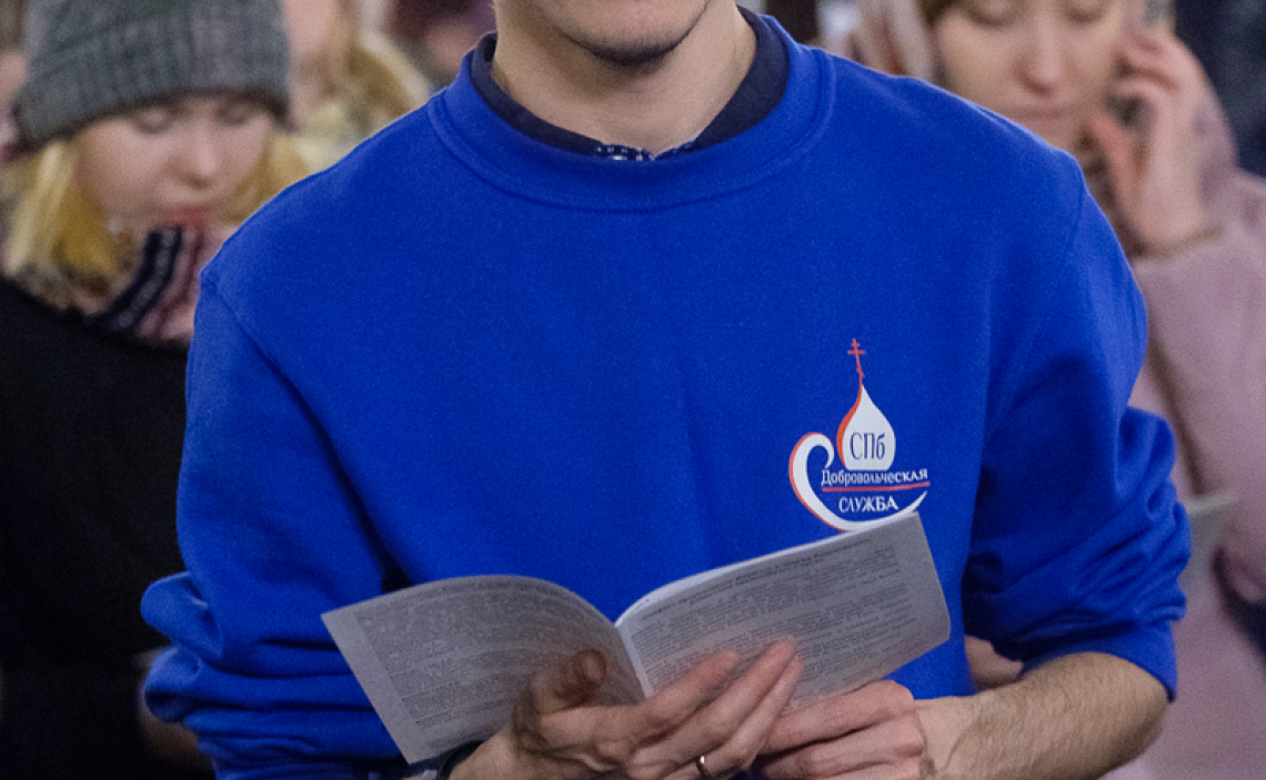 Волонтеры епархиальной молодежной добровольческой службы раздавали прихожанам тексты акафиста и буклеты с анонсом ближайших мероприятий, посвященных Дню православной молодежи.