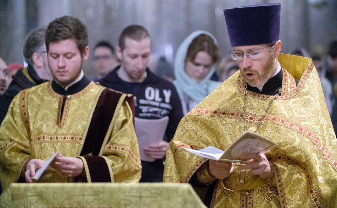 После молебна диакон храма праведных Симеона Богоприимца и Анны пророчицы Сергий Учанейшвили обратился к молодежи.