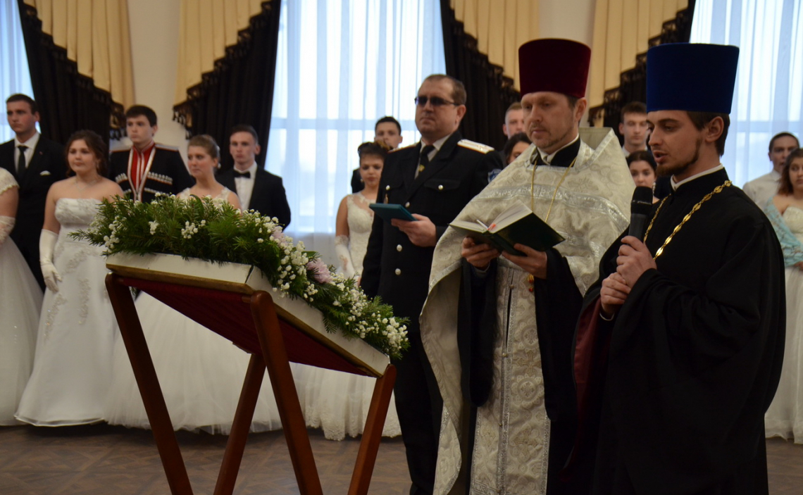 Открыл мероприятие настоятель храма святого благоверного князя Александра Невского города Темрюка протоиерей Виталий Колмык, который поздравил присутствующих с праздником Сретение Господне и днем православной молодежи, пожелал им окунуться в атмосферу того времени, когда балы были неотъемлемой частью жизни людей, подчеркнул красоту нарядов всех участников и пожелал любить свою страну, узнавать и сохранять свои православные и культурные традиции. После слов напутствия, протоиерей Виталий, совместно со штатным священнослужителем храма святого благоверного князя Александра Невского города Темрюка иереем Иоанном Олексик совершили молебен, чтобы Господь благословил данное благое начинание. В течении всего вечера 20 пар танцевали разученные заранее танцы – полонез, вальс, контрданс, падекатр, менуэт, участвовали в викторине, в играх «Ручеек», «Золотые ворота», «Танец со шляпами» танцевали с родителями. Порадовали своим выступлением гости бала – вокальный дуэт «Душа на ладони», Чижиков Павел, флейтистка Белова Мария, Евгений Лоза.
