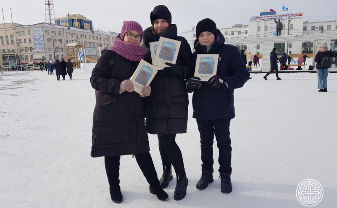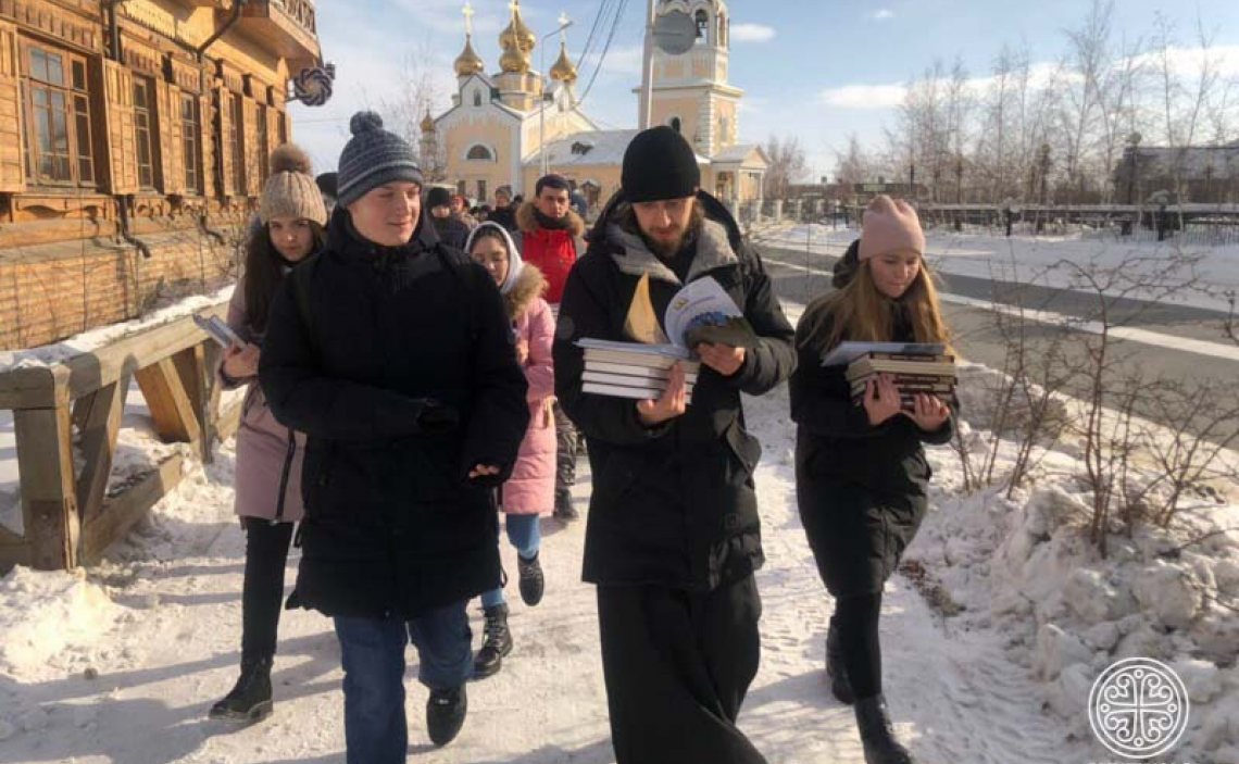 После церемонии открытия выставки-форума «Радость Слова» в Якутской духовной семинарии ребята провели социальную акцию, приуроченную к Дню Православной книги — раздачу православной литературы на русском и якутском языках на центральной площади Якутска. Участие в деле православной миссии невероятно воодушевило юношей и девушек, они высказали пожелание в будущем повторить или провести похожее мероприятие.