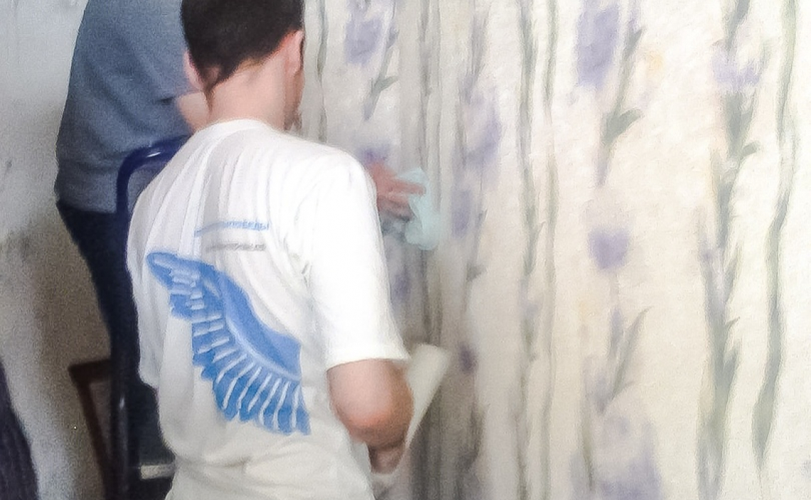 Ребята быстро откликнулись и в течение трёх дней - отодрали старые обои и поклеили новые. А заодно выбили и почистили ковры.