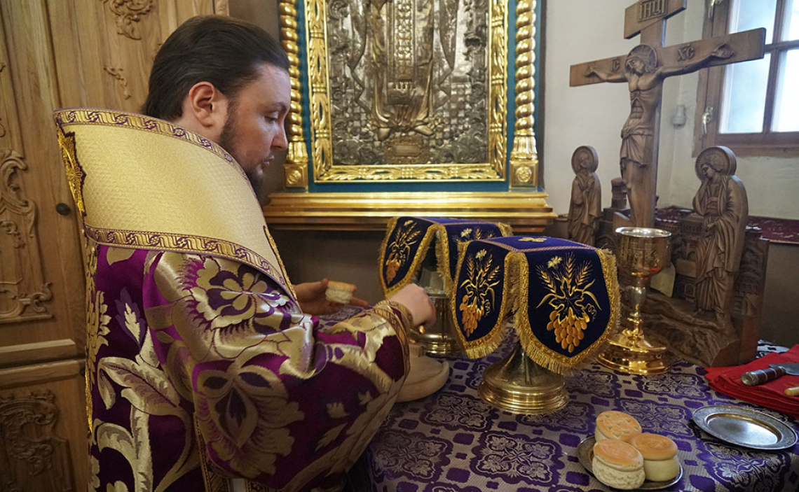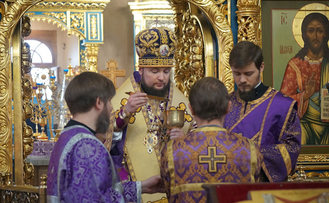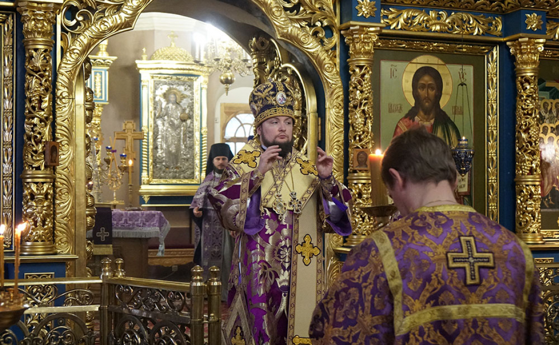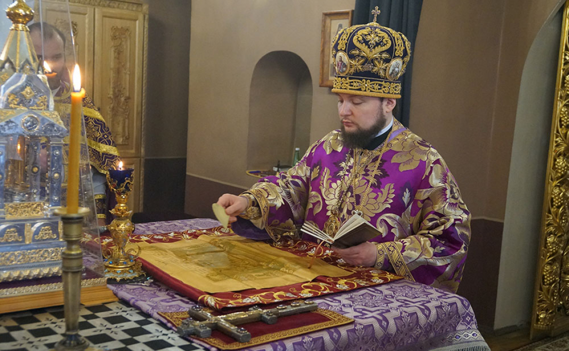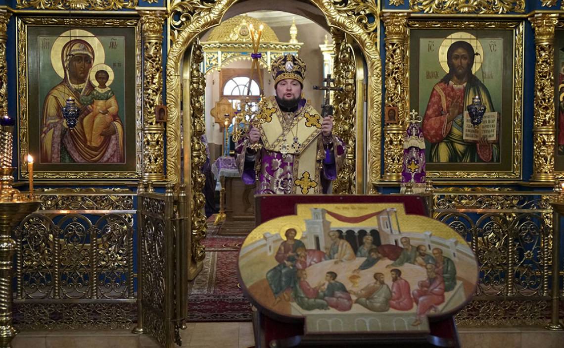 16 апреля епископ Истринский Серафим совершил Божественную литургию в Успенском соборе Крутицкого Патриаршего подворья