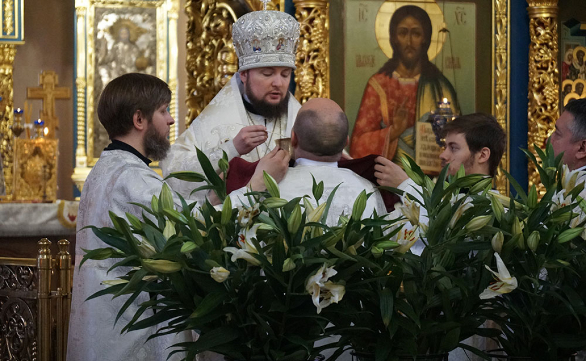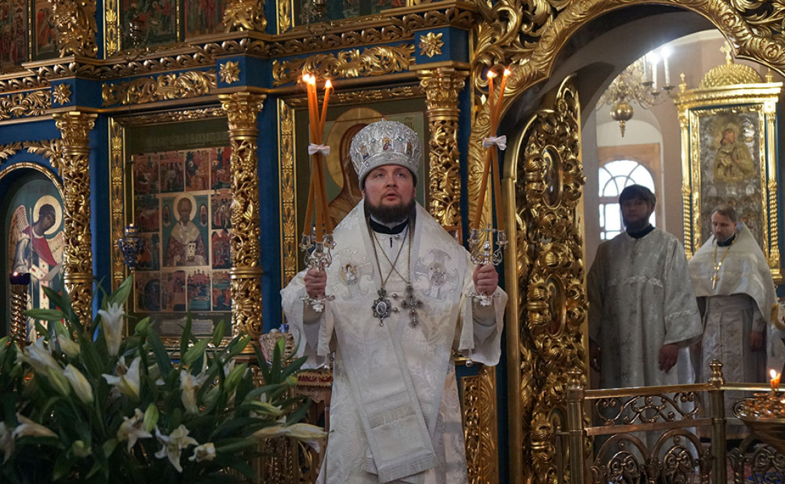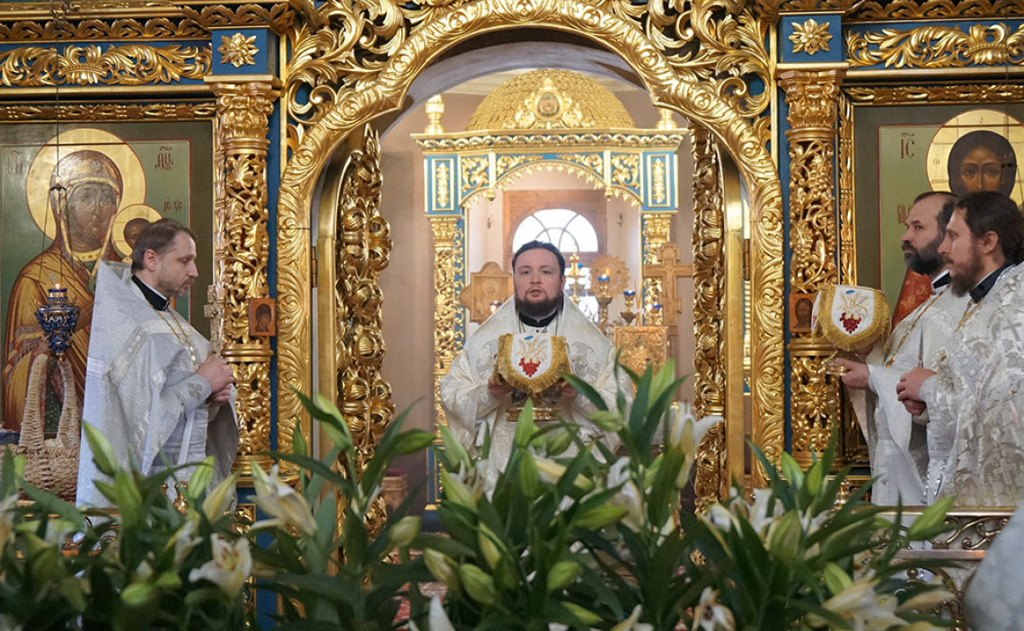 18 апреля епископ Истринский Серафим совершил Божественную литургию в Успенском соборе Крутицкого Патриаршего подворья