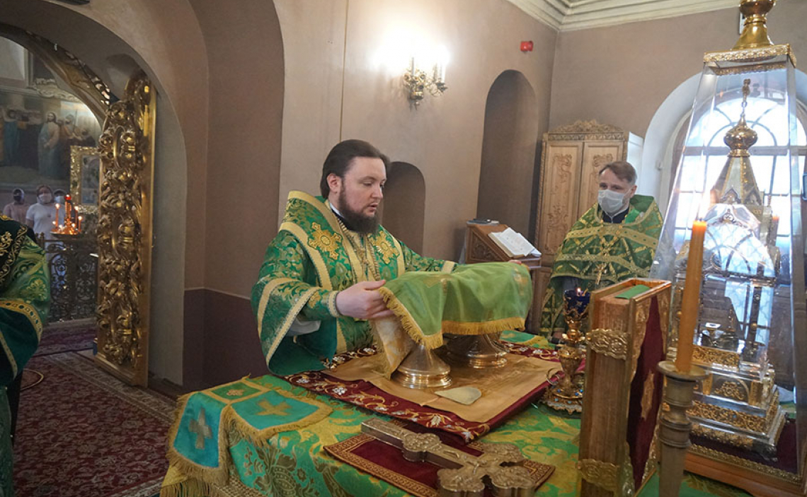 8 июня, в День Святого Духа, епископ Истринский Серафим совершил Божественную Литургию в Свято-Успенском соборе Крутицкого Патриаршего подворья.