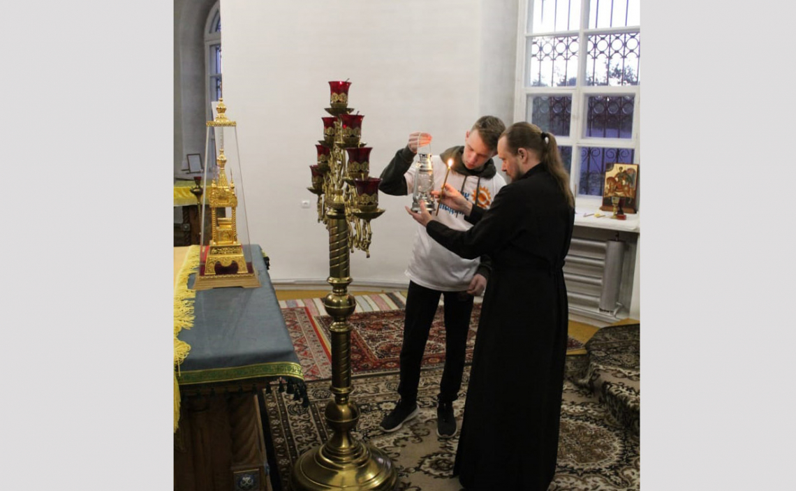 Все свечи были зажжены от огня неугасимой лампады, привезённого из Свято-Никольского храма г.Алексина. Этот же огонь в рамках акции "Свеча памяти" наши алексинские православные волонтёры сразу после торжественного мероприятия, перевезли в Спасский Костомаровский пещерный женский монастырь, от него зажгли там лампаду и помолились о православных воинах, положивших жизнь свою за Веру и Отечество!