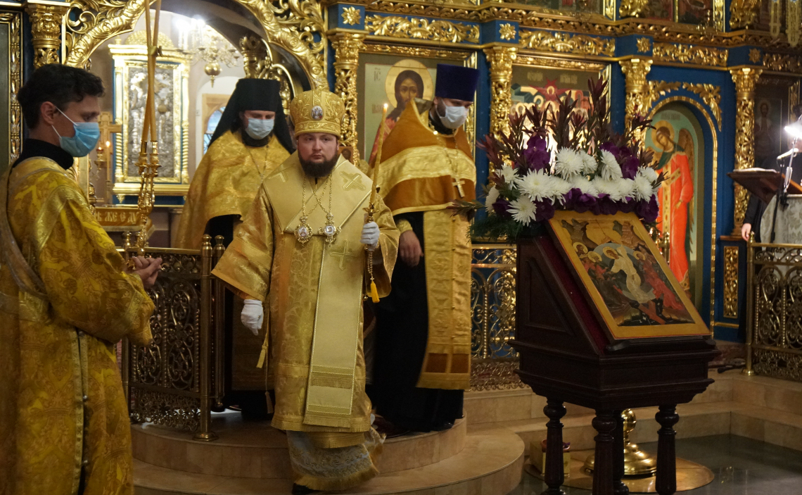 Его Преосвященству сослужил соборный клир, богослужебные песнопения исполнил хор Крутицкого Патриаршего подворья.