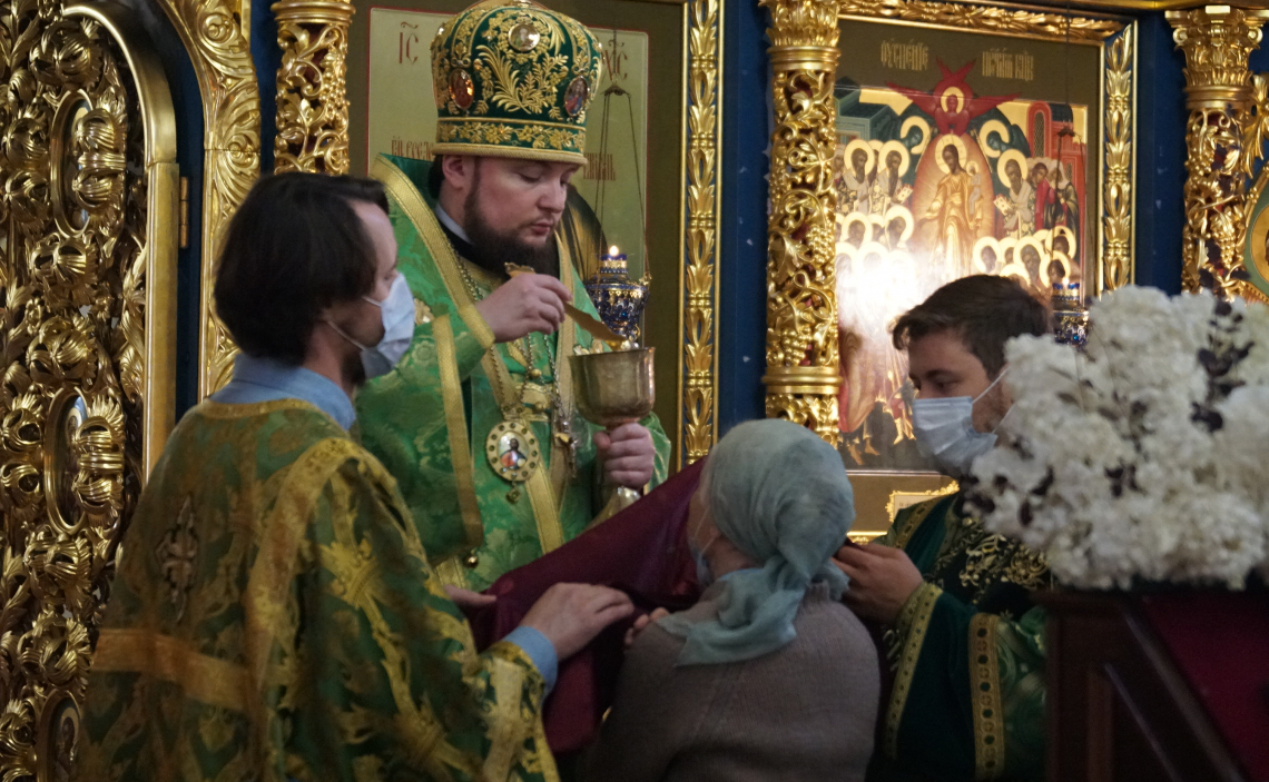 Его Преосвященству сослужил соборный клир, богослужебные песнопения исполнил хор Крутицкого Патриаршего подворья. епископ Истринский Серафим совершил Божественную литургию в Свято-Успенском соборе Крутицкого Патриаршего подворья.