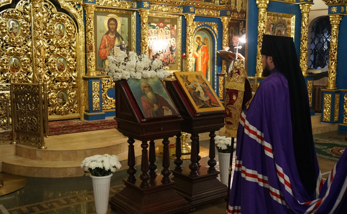 1 августа епископ Истринский Серафим совершил всенощное бдение в Свято-Успенском соборе Крутицкого Патриаршего подворья