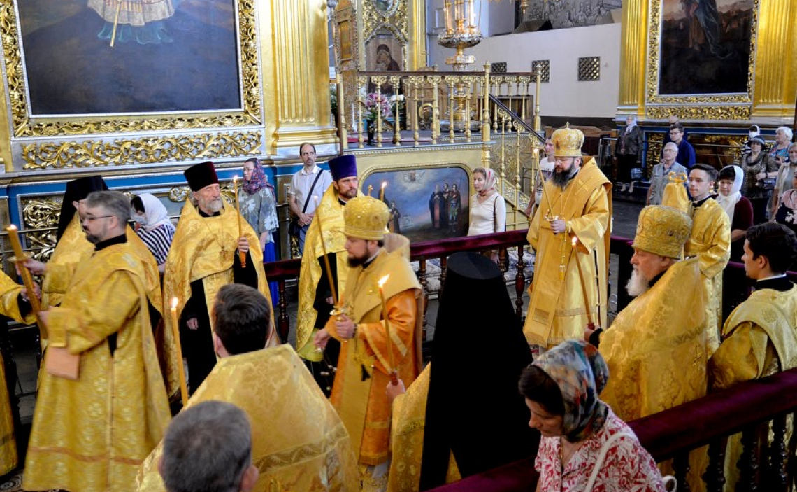 Архипастырям сослужили ключарь кафедрального храма протоиерей Григорий Трубин, духовенство Успенского собора.
