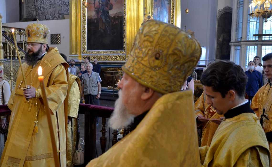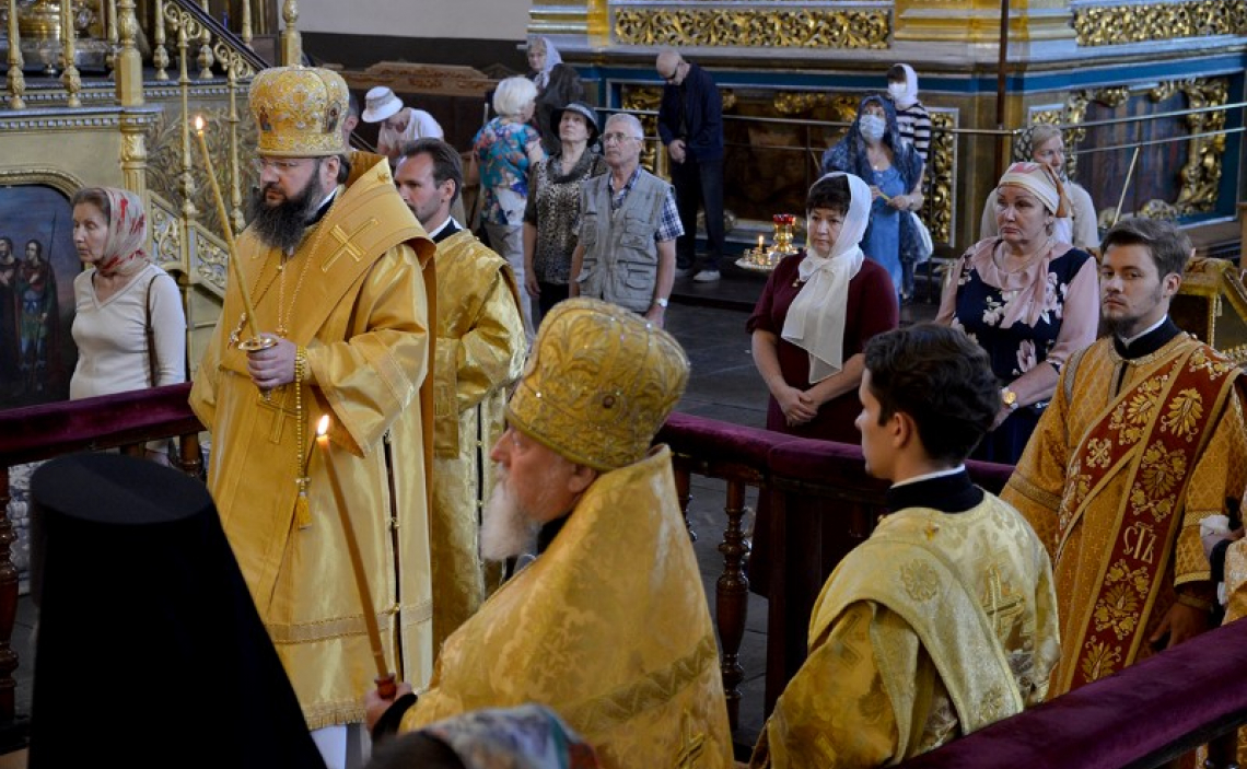 8 августа епископ Истринский Серафим сослужил митрополиту Смоленскому и Дорогобужскому Исидору в Смоленском Свято-Успенском кафедральном соборе