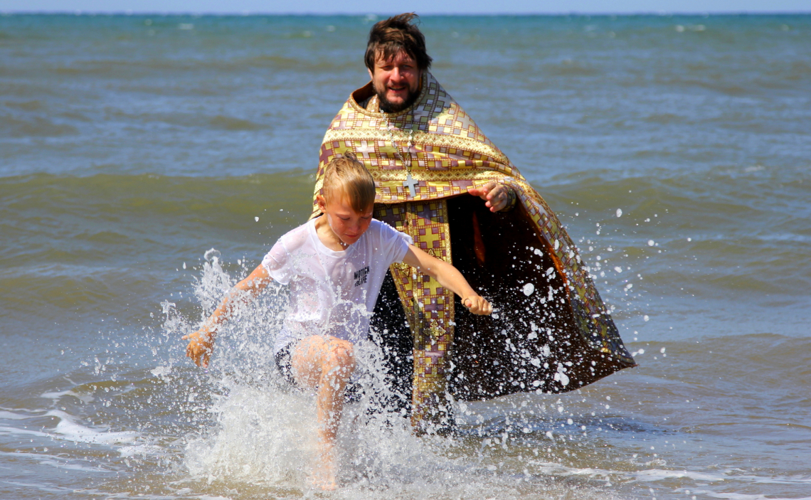 Одним из самых ярких событий слёта стало крещение в водах Татарского пролива. Стать участником таинства крещения пожелали 8 человек.