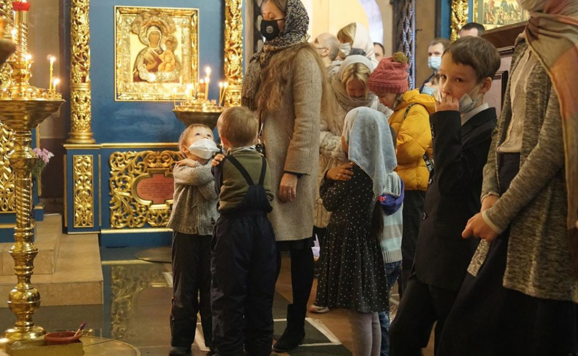 За богослужением молились прихожане храма, среди которых молодые семьи с детьми.
