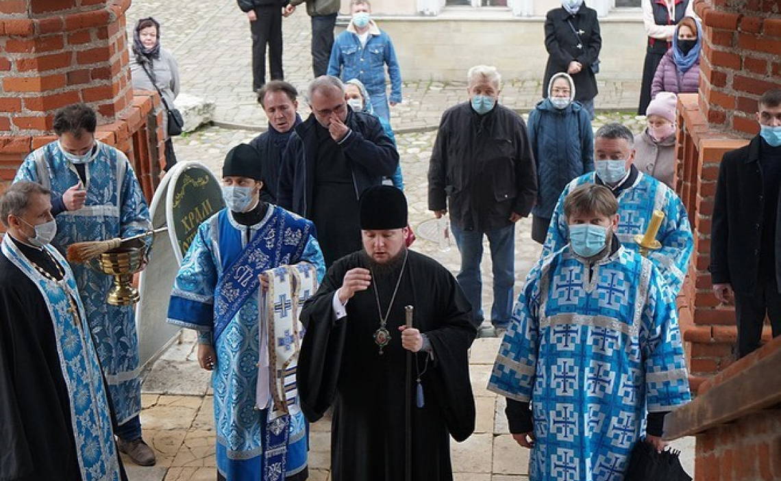 По сугубой ектении Владыка вознес молитву «во время губительного поветрия и смертоносныя заразы», а также молитву о Святой Церкви.