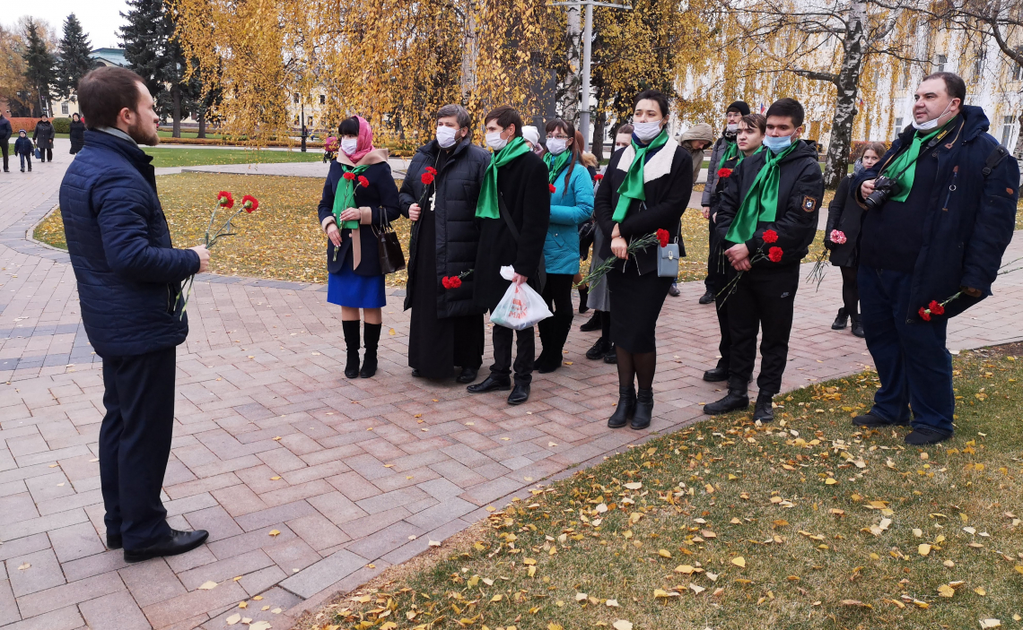 Волонтёры Нижегородской епархии в День народного единства почтили память руководителя Нижегородского ополчения 1612 года Кузьмы Минина