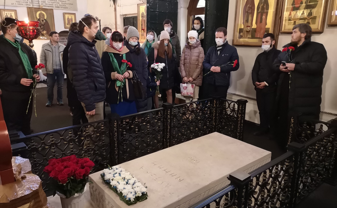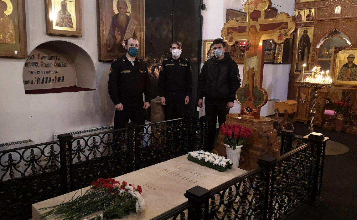 Представители волонтёров епархии собрались в Нижегородском кремле, где в Михайло-Архангельском храме возложили цветы к могиле Кузьмы Минина и соборно помолились об упокоении великого земляка и спасителя Отечества. Памятное мероприятие по благословению руководителя епархиального отдела по делам молодёжи священника Андрея Бандина возглавили главный специалист отдела, координатор волонтёрского движения Александр Вихарев и помощник благочинного по делам молодёжи Московского округа иерей Иаков Покровский. В мероприятии также участвовали кураторы по молодёжной работе благочиннических округов Нижегородской епархии: Константин Мешалкин, Екатерина Строганова, Павел Козловцев, Илья Волков, Дмитрий Ланцов, Ксения Котельникова, Ольга Кожанова.