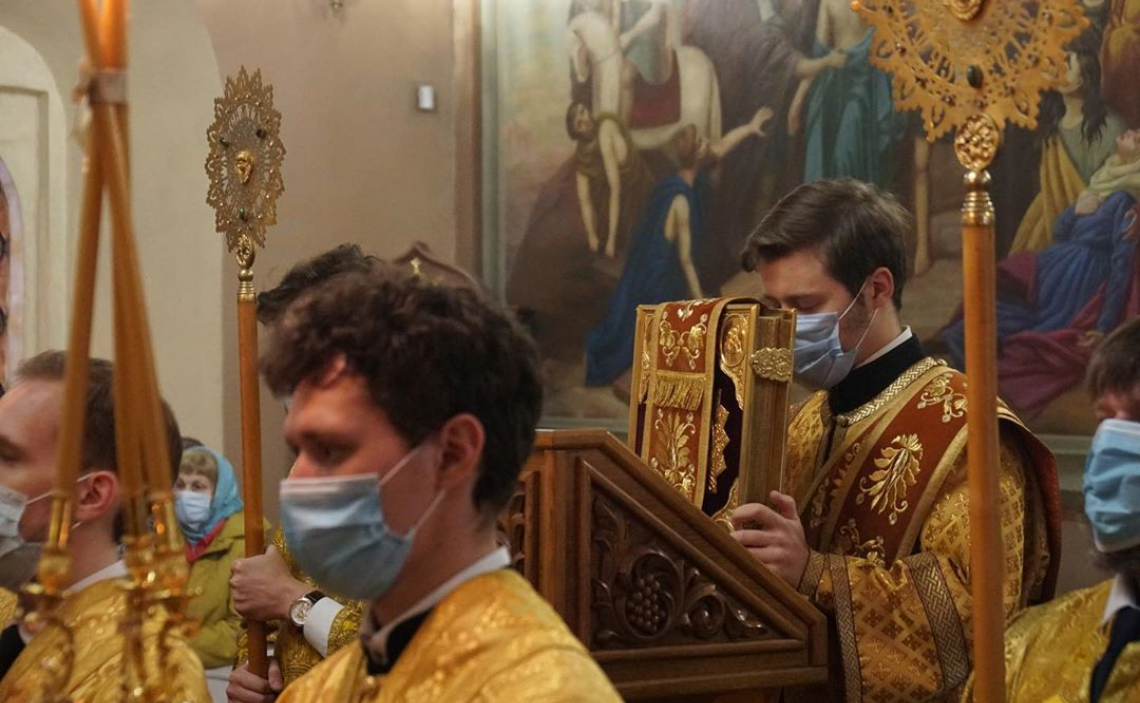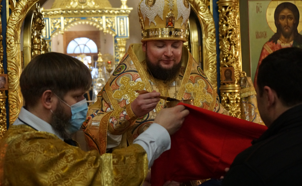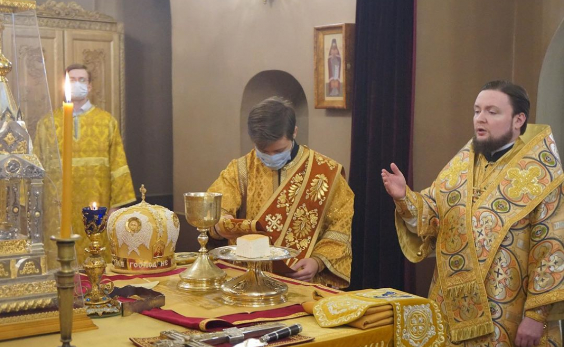 По сугубой ектении Владыка вознес молитву «во время губительного поветрия и смертоносныя заразы», а также молитву о Святой Церкви.