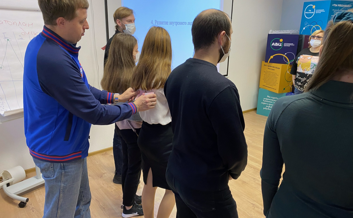 В практической части по заданию спикера участники семинара выполнили несколько тестирований для определения наличия личностных компетенций и соответствия поведенческим моделям лидера. По итогам тестов была проведена групповая рефлексия для определения имеющегося потенциала к лидерству. Затем спикер, разделив участников семинара на 2 группы, провёл деловую игру-тренинг на выявление лидеров и умение лидера собрать команду и организовать слаженную работу. Применение кураторами данной методики в своих молодёжных организациях позволит моделировать эффективную командную работу и выявлять по её итогам молодёжных активистов с задатками лидеров.