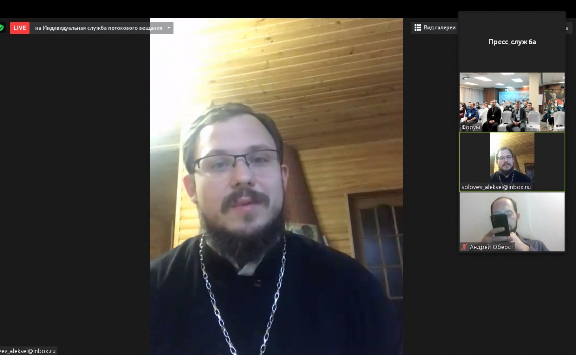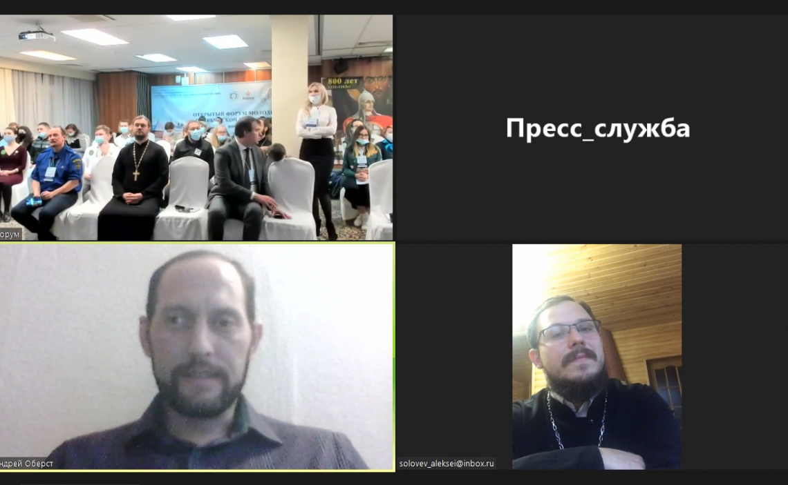 После нее состоялась онлайн-встреча с заместителем председателя Синодального отдела по делам молодежи Русской Православной Церкви иереем Алексием Соловьевым, в рамках которой слушатели могли задавать спикерам интересующие их вопросы, а также узнать о запланированных мероприятиях Синодального отдела, а также об информационной и иной поддержке, которую отдел оказывает епархиальным отделам по делам молодежи. В работе онлайн-встречи также принимали активное участие руководитель сектора по связям с епархиями Синодального отдела по делам молодежи Андрей Владимирович Оберст, руководитель отдела по делам молодёжи Челябинской епархии Русской Православной Церкви протоиерей Ярослав Иванов, эксперт Комиссии ОПРФ по гармонизации межнациональных и межрелигиозных отношений, член Общественной Палаты Челябинской области, руководитель Проектного офиса при отделе по делам молодёжи Челябинской епархии Анисин Артём Альбертович, руководитель молодёжного отдела Миасского благочиния Челябинской епархии, руководитель молодежного миссионерского общества «LOGOS» Глеб Александрович Бляшон
