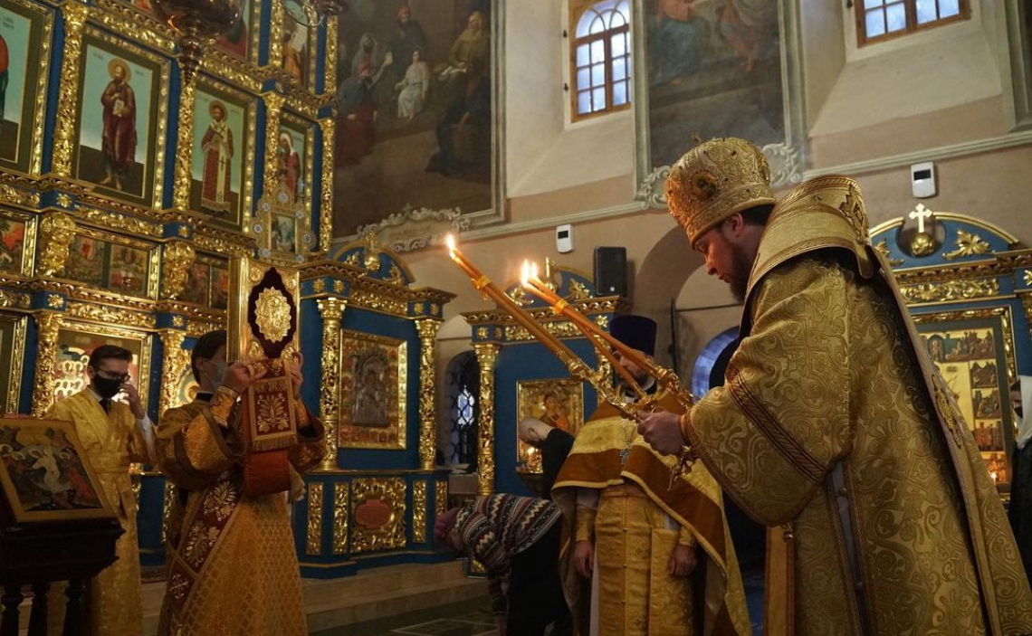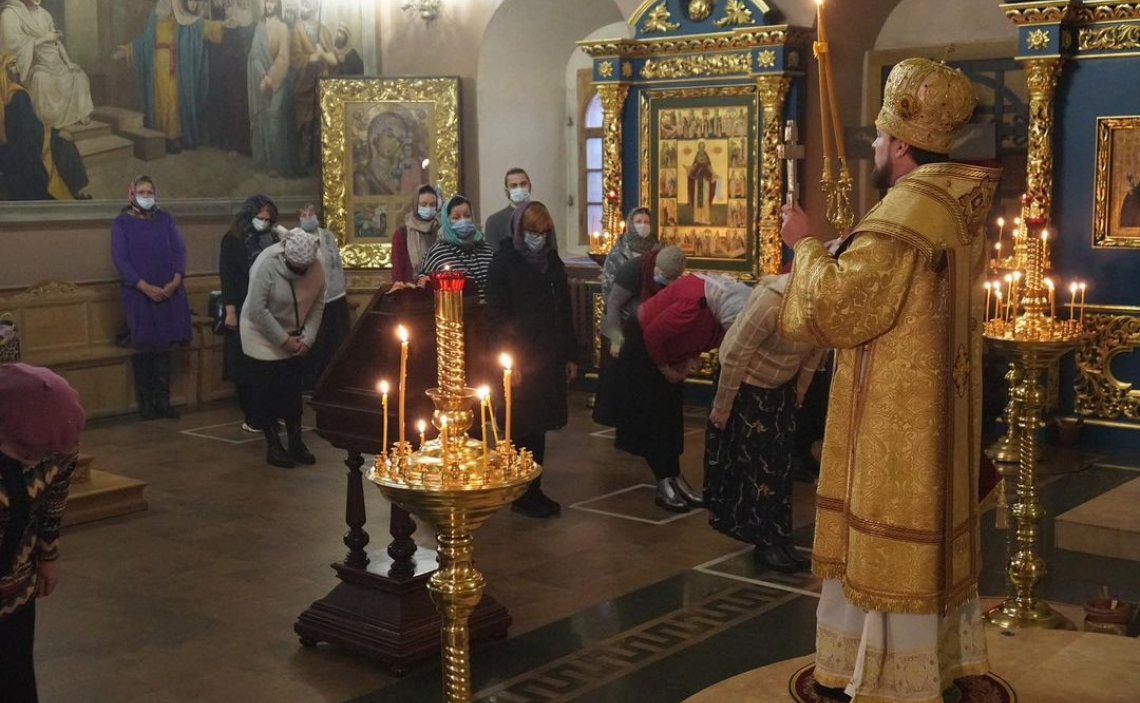 По сугубой ектении Владыка вознес молитву «во время губительного поветрия и смертоносныя заразы», а также молитву о Святой Церкви.