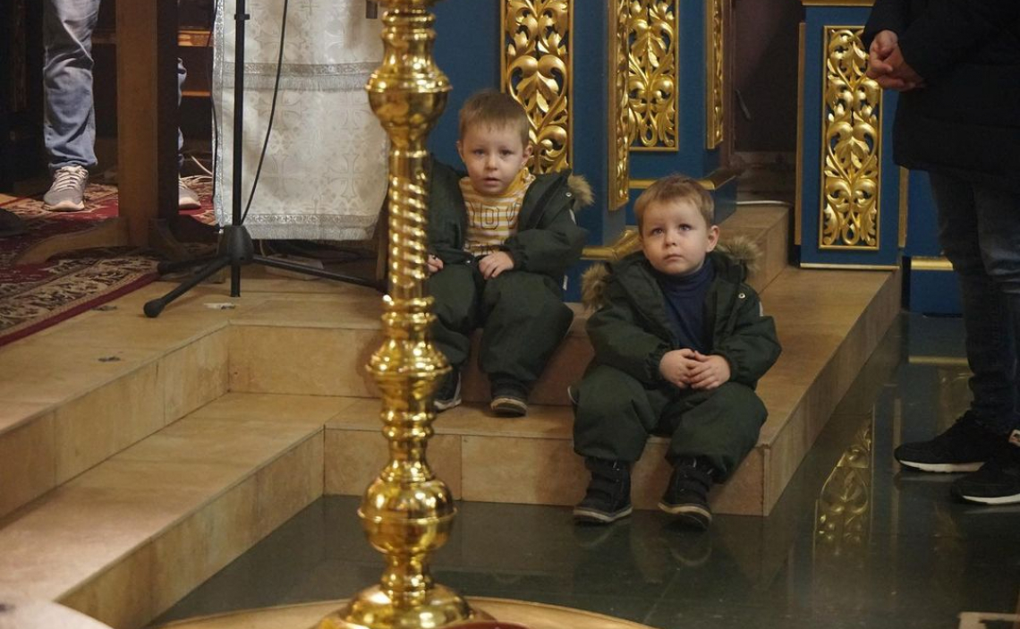 За богослужением молились прихожане храма, среди которых молодые семьи с детьми.
