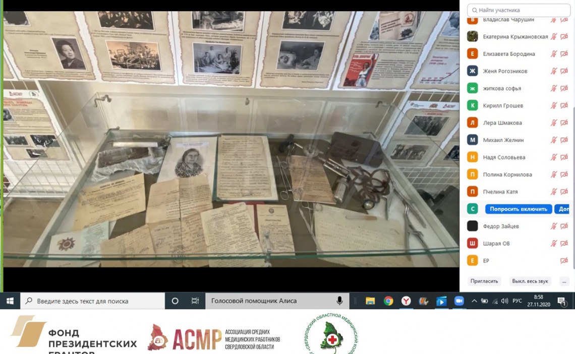 В рамках проекта был организован ряд онлайн-экскурсий по музейным военно-историческим реконструкциям эвакогоспиталя времен Великой Отечественной войны. Экскурсии охватывают 12 городов Свердловской области: Алапаевск, Асбест, Екатеринбург, Ирбит, Каменск-Уральский, Краснотурьинск, Красноуфимск, Нижний Тагил, Новоуральск, Ревда, Серов, Сухой Лог.