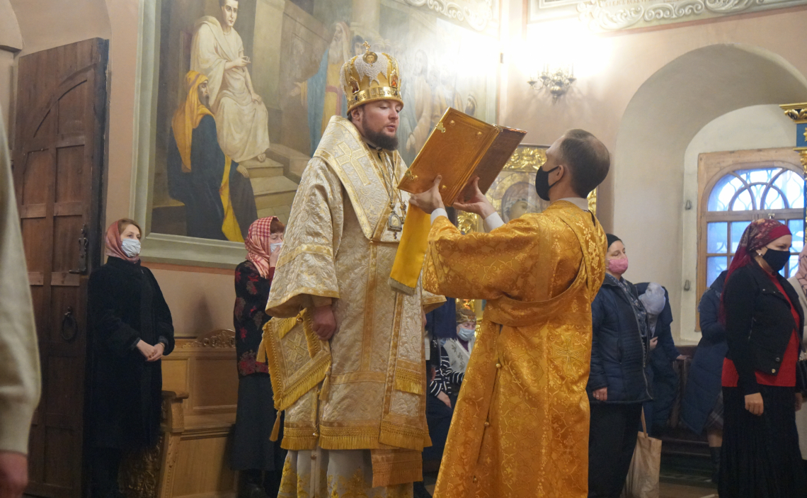 Его Преосвященству сослужило местное духовенство, песнопения исполнял мужской хор храма.