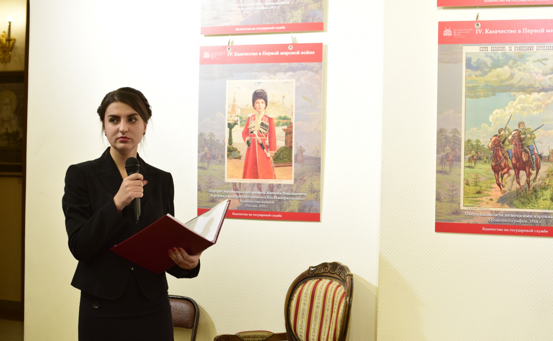 Также с приветственным словом выступили Игорь Олегович Родобольский и Ольга Валериановна Деникаева, которые отметили важность открытия выставки, тем более в такие непростые времена, когда казачество становится опорной силой государства, вносит важнейший вклад в культурное развитие России и является структурой, способной воспитать подрастающее поколение в патриотическом духе.