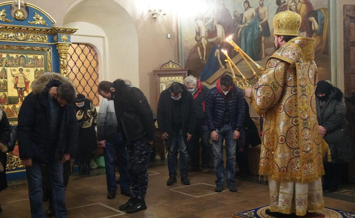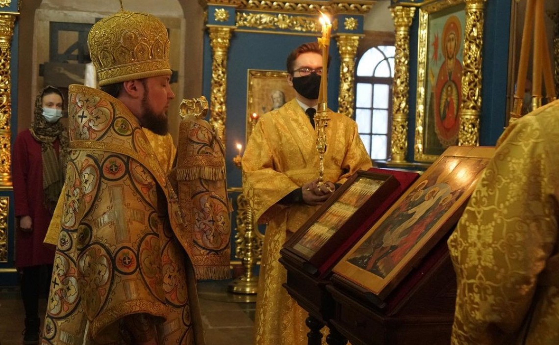 По сугубой ектении Владыка вознес молитву «во время губительного поветрия и смертоносныя заразы», а также молитву о Святой Церкви.