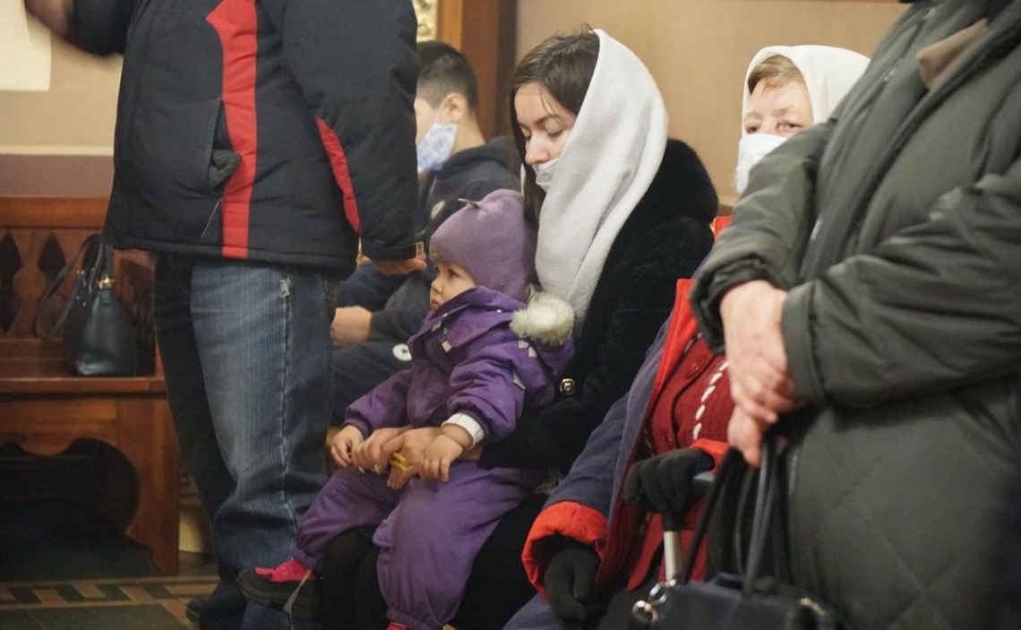 За богослужением молились прихожане храма, среди которых молодые семьи с детьми.