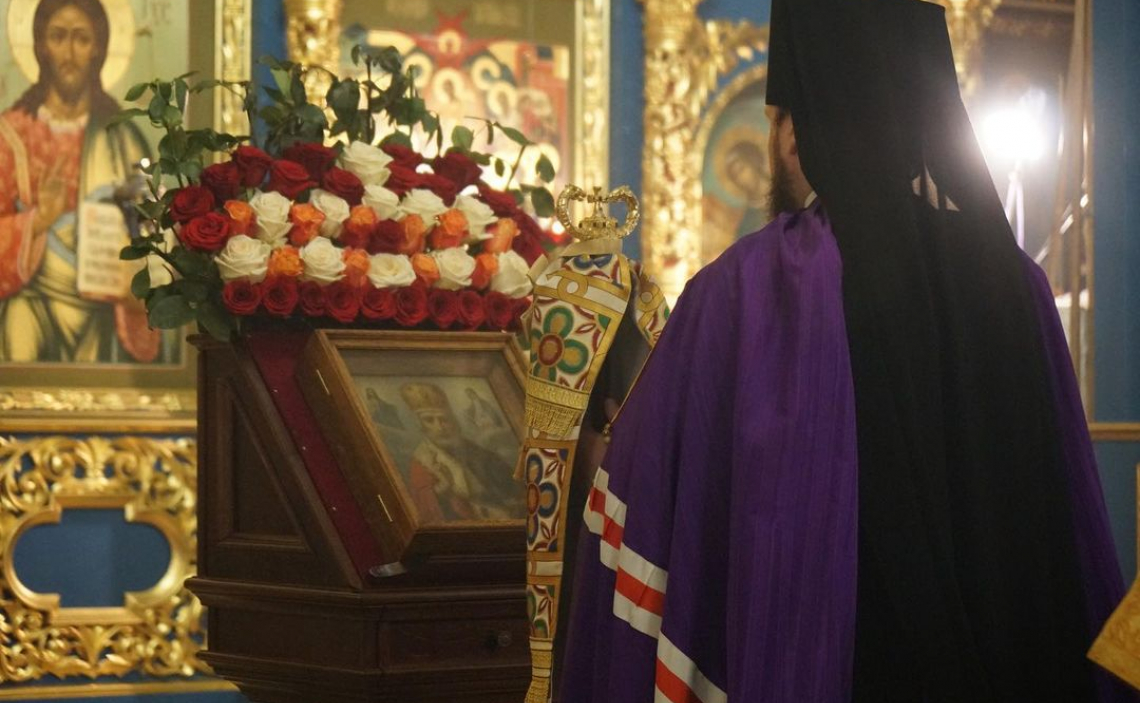 После кафизмы был прочитан акафист Святителю Николаю, а после Его Преосвященство возглавил полиелей.