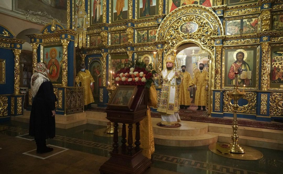 После проповеди при пении молитвы «Под Твою милость…» Его Преосвященство совершил поклонение Божией Матери перед Ее чудотоворным Феодоровским образом.