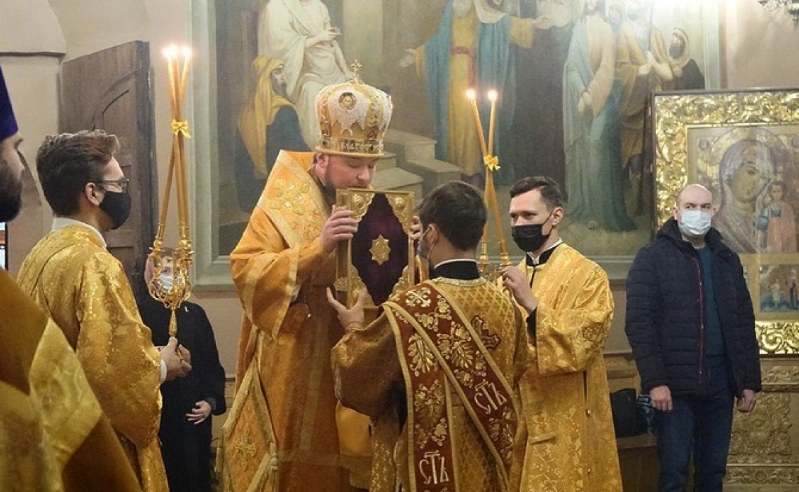По сугубой ектении Владыка вознес молитву «во время губительного поветрия и смертоносныя заразы», а также молитву о Святой Церкви.